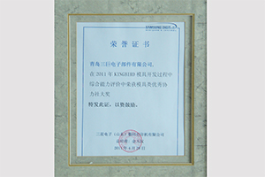 青島三巨電子部件有限公司在三星電子(山東)數碼打印機有限公司舉辦的KINGBIRD模具開發過程中綜合能力評價獲得模具類優秀協力社大獎;